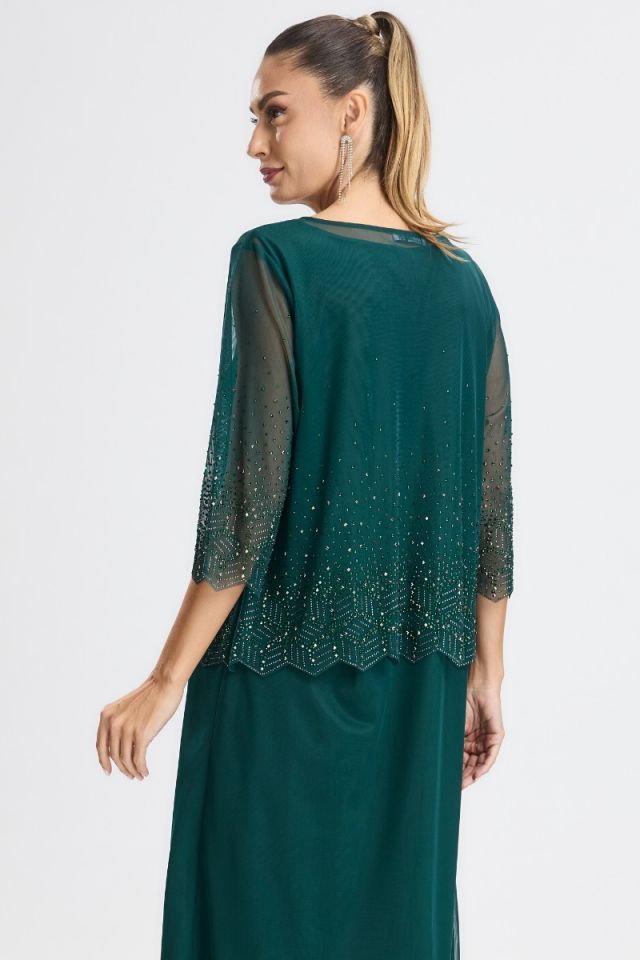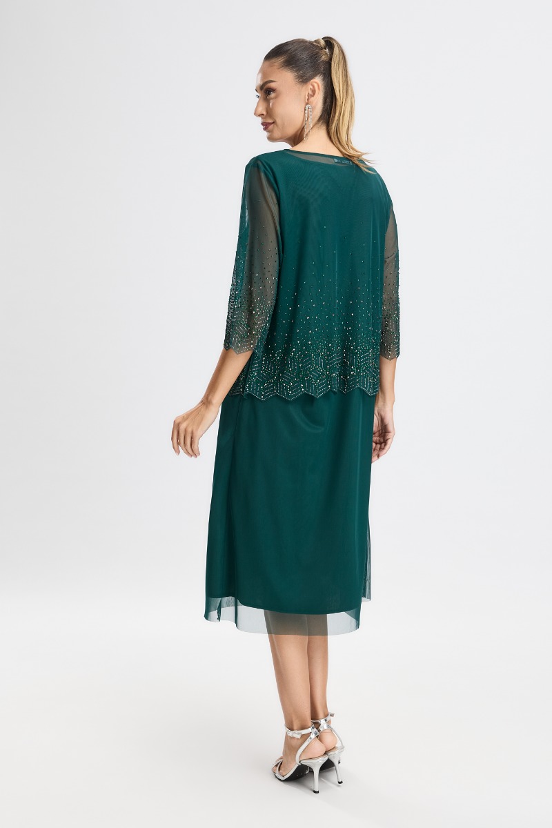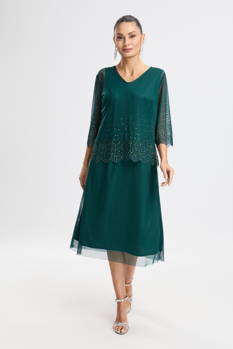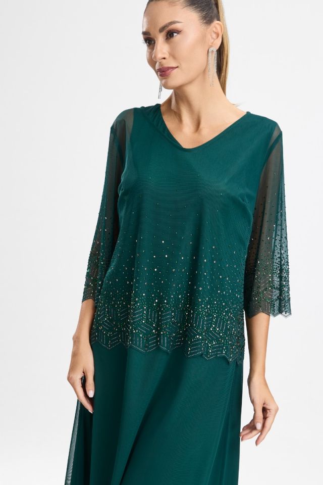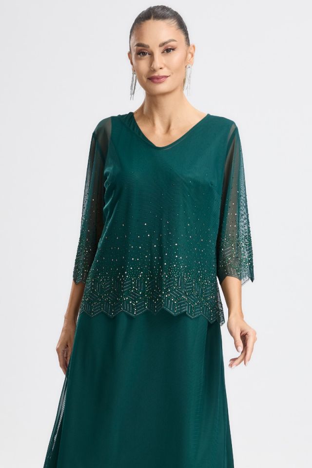 Rochia de ocazie verde din tull, formată din două piese, este expresia eleganței moderne. Bluza accesorizata cu strass-uri și rochia midi din tulle delicat creează un efect spectaculos, păstrând totodată un aer rafinat și feminin. Textura vaporoasă și nuanța vibrantă de verde fac din această rochie alegerea ideală pentru evenimente deosebite, unde vrei să impresionezi prin stil și grație.