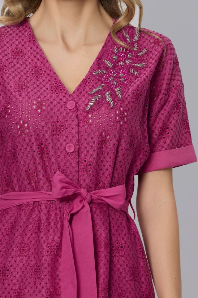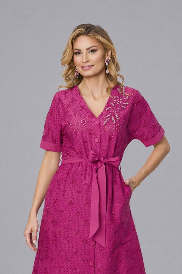 Rochie casual midi albastra cu nasturi in fata ,ideala pentru o tinuta lejera.