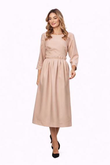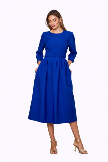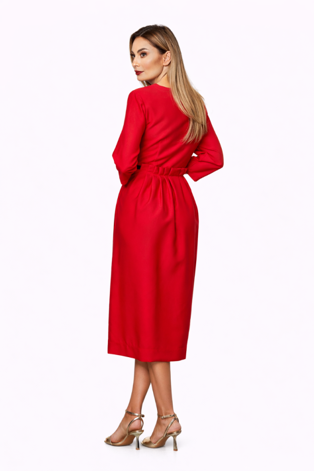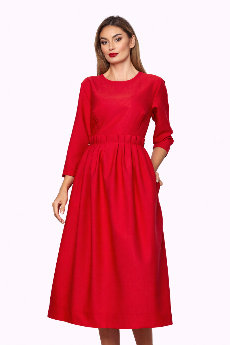 Rochie midi eleganta rosie cu croi in clos este o combinatie de clasic si modern perfecta atat pentru tinute office, tinute formale dar si elegante.