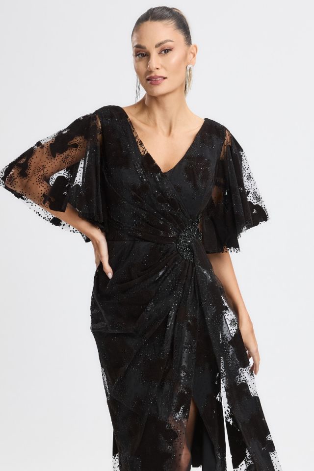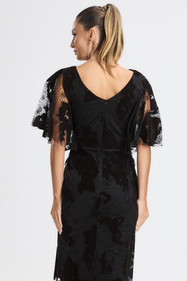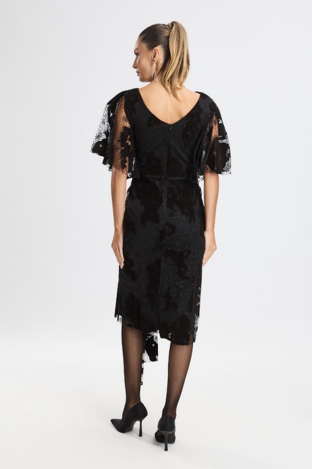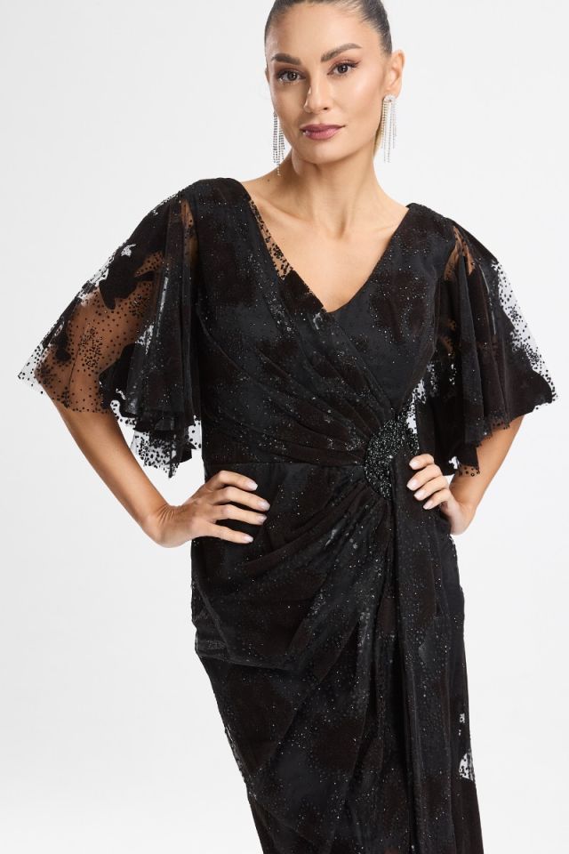 Rochia midi de ocazie neagra cu detalii catifelate și accente de glitter este definiția eleganței moderne. Texturile fine și sclipirile discrete se îmbină armonios, oferind un look sofisticat și fermecător. Ideală pentru petreceri sau evenimente speciale în care vrei să radiezi rafinament și stil.
