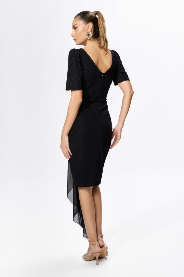 Rochie de ocazie din licra cu fir lame si detaliu din voal tip esarfa Brillia Neagra