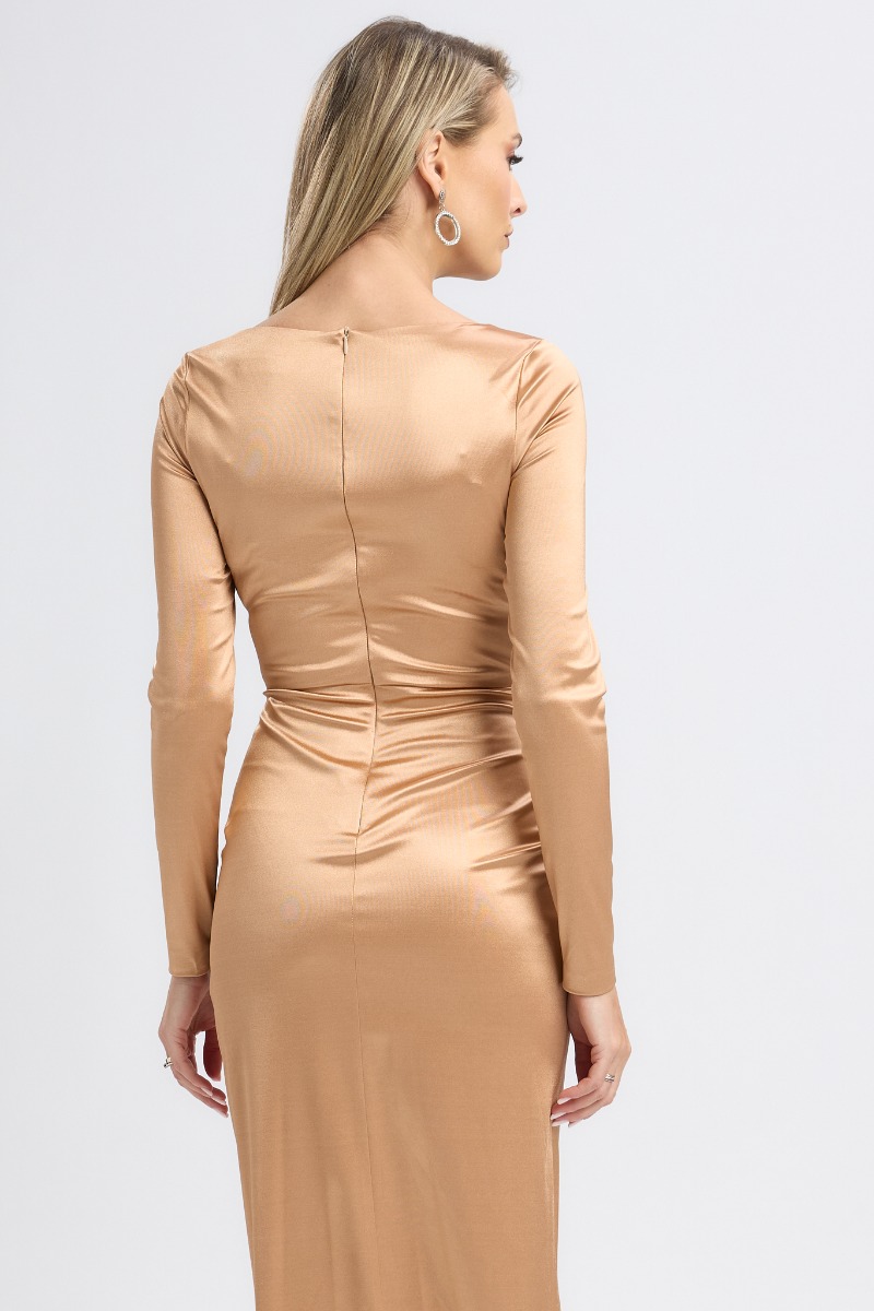 Rochie de ocazie din licra satinat cu croi petrecut Yarina Nude