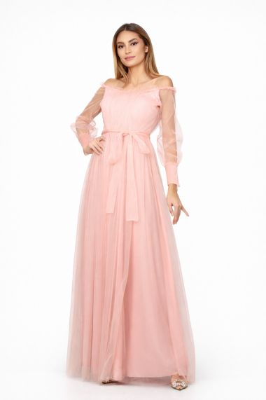 Rochie de ocazie din tull cu decolteu pe umeri Temptation Peach