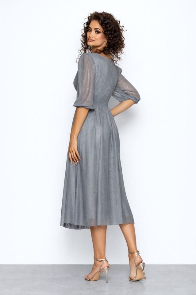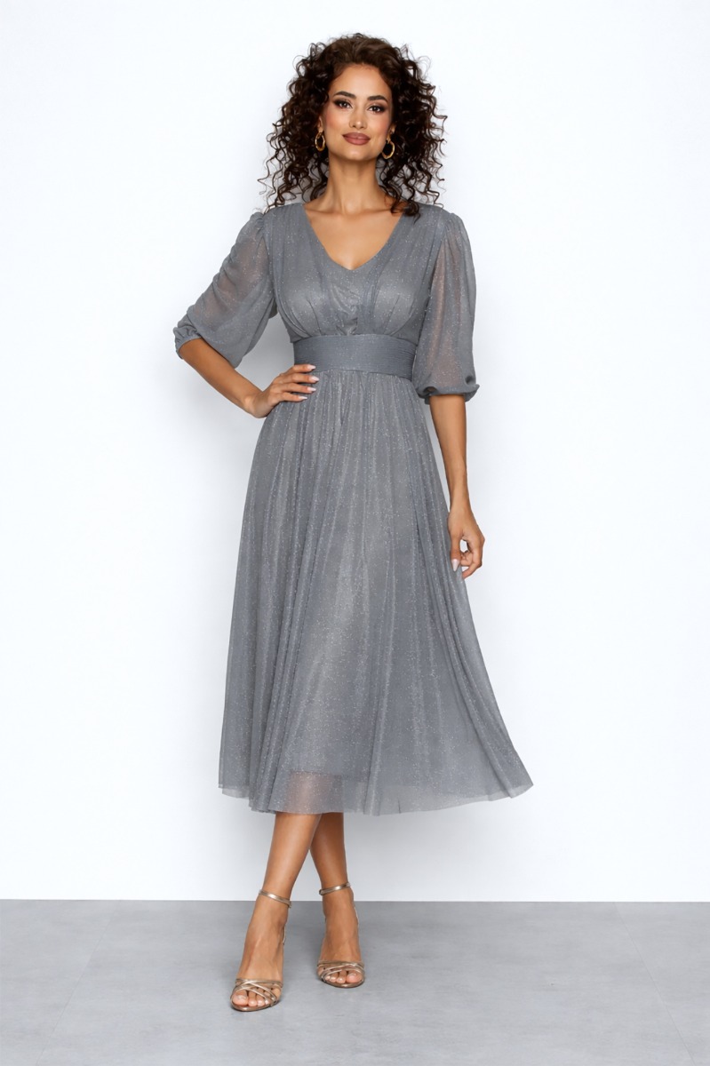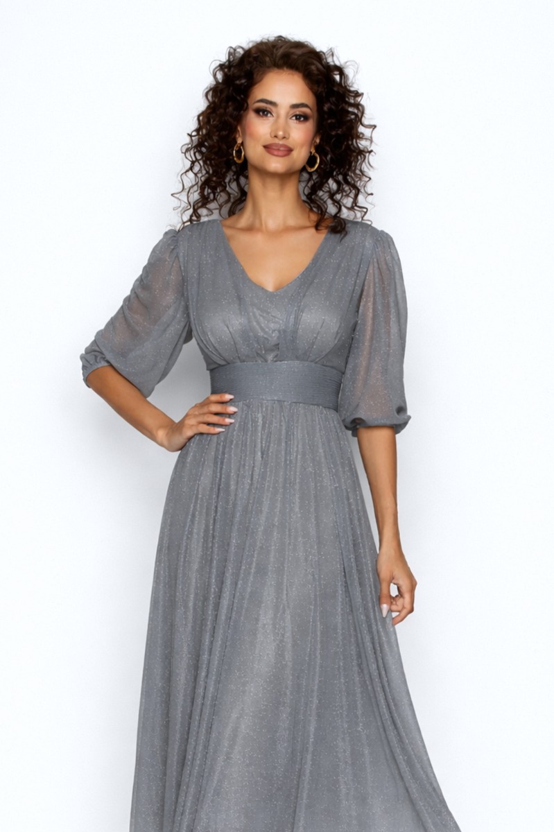 Rochie de ocazie din voal cu glitter Wilma Gri Inchis