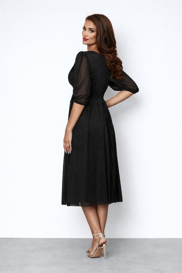 Rochie de ocazie din voal cu glitter Wilma Neagra