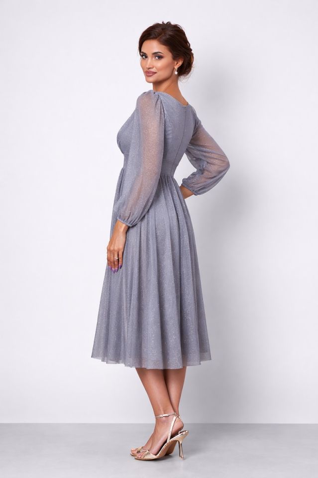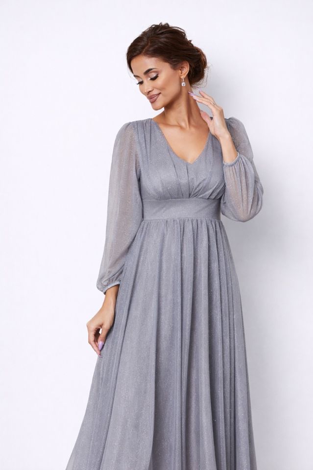 Rochie de ocazie din voal cu glitter Wilma Gri Inchis