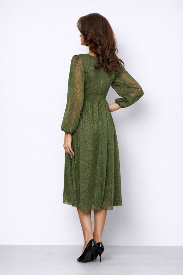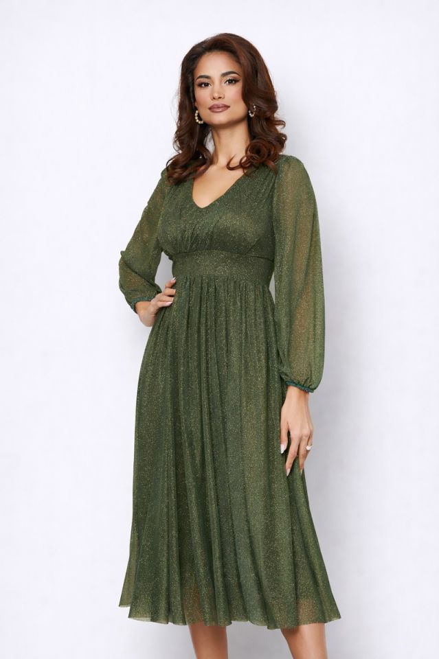 Rochie de ocazie din voal cu glitter Wilma Kaki