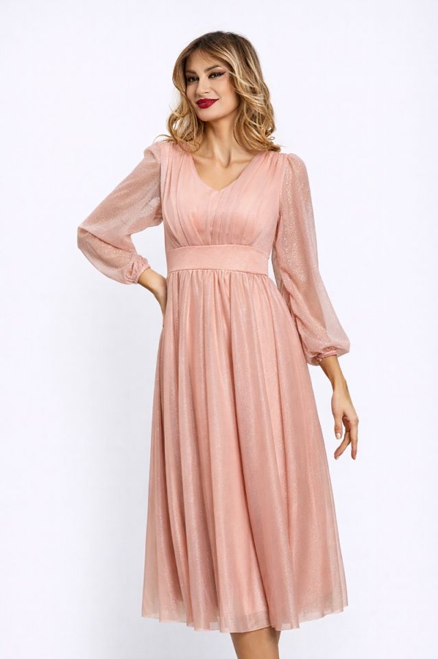 Rochie de ocazie din voal cu glitter Wilma Peach