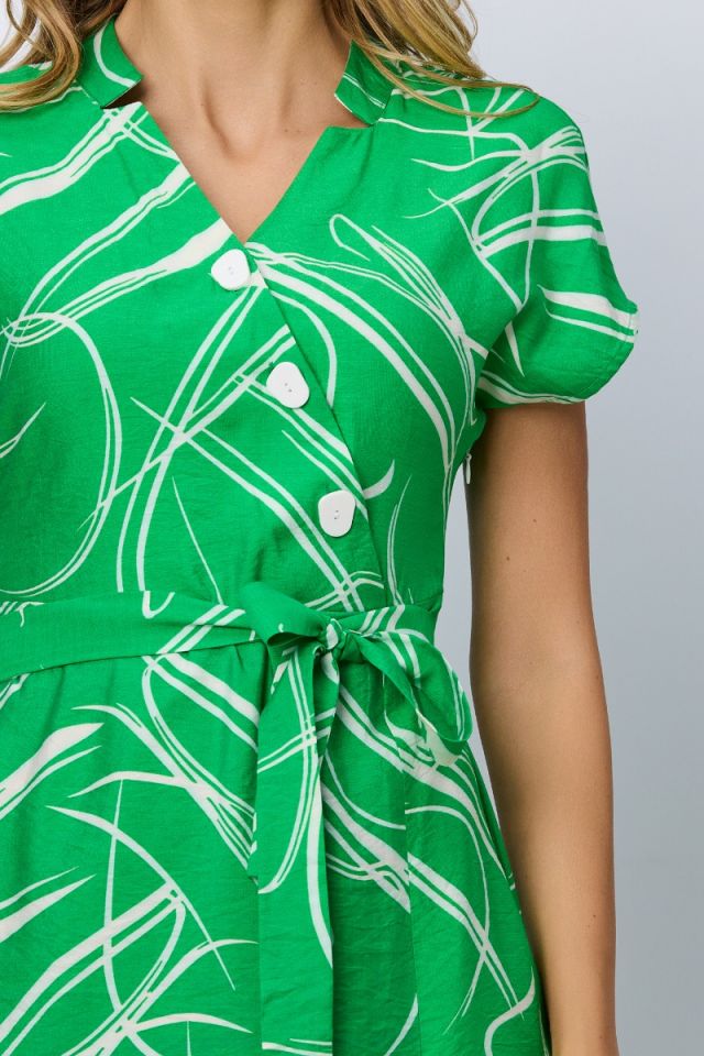 Rochie de zi, midi, din bumbac cu imprimeu, perfecta pentru un eveniment de zi . Este o combinatie de clasic si modern perfecta atat pentru tinute office dar si tinute formale