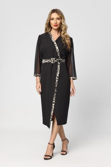 Rochie eleganta cu detalii animal print Tessia Neagra