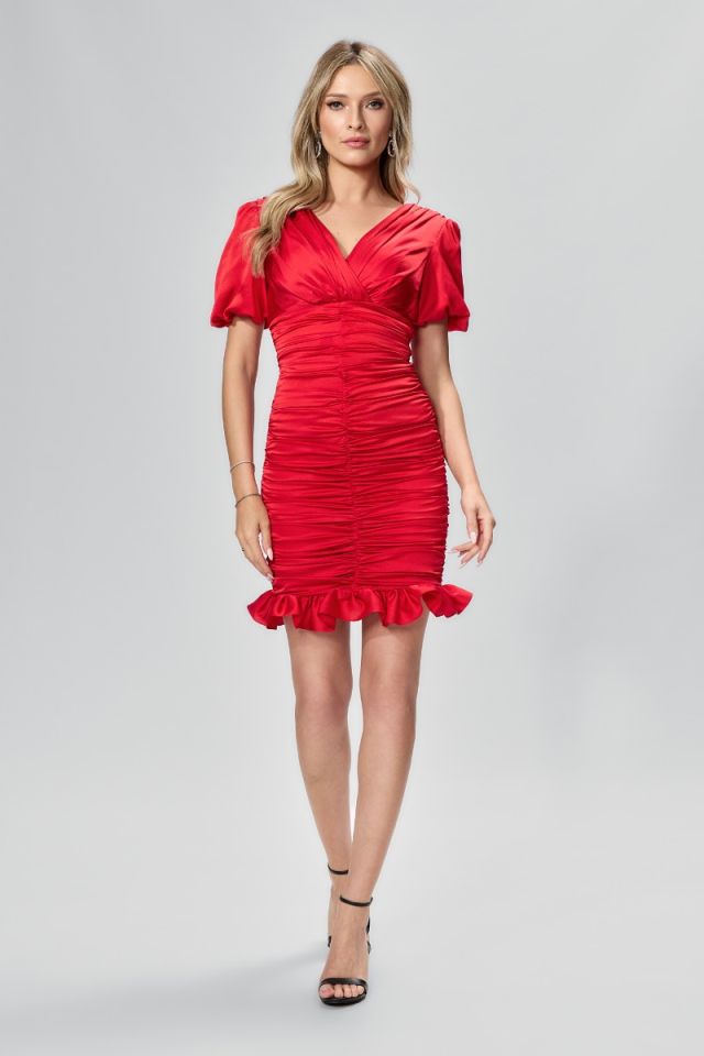 Rochie eleganta din satin incretit cu maneci scurte Maddie Rosie