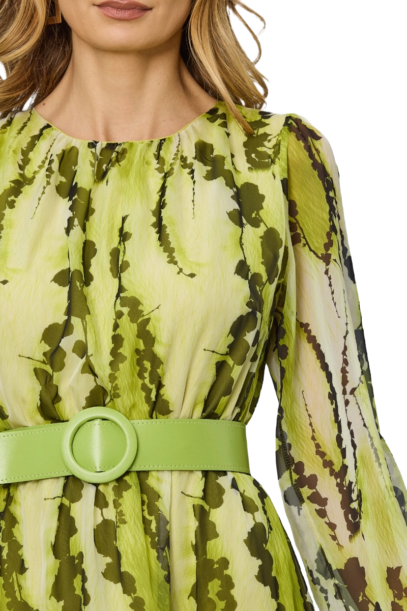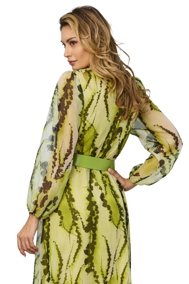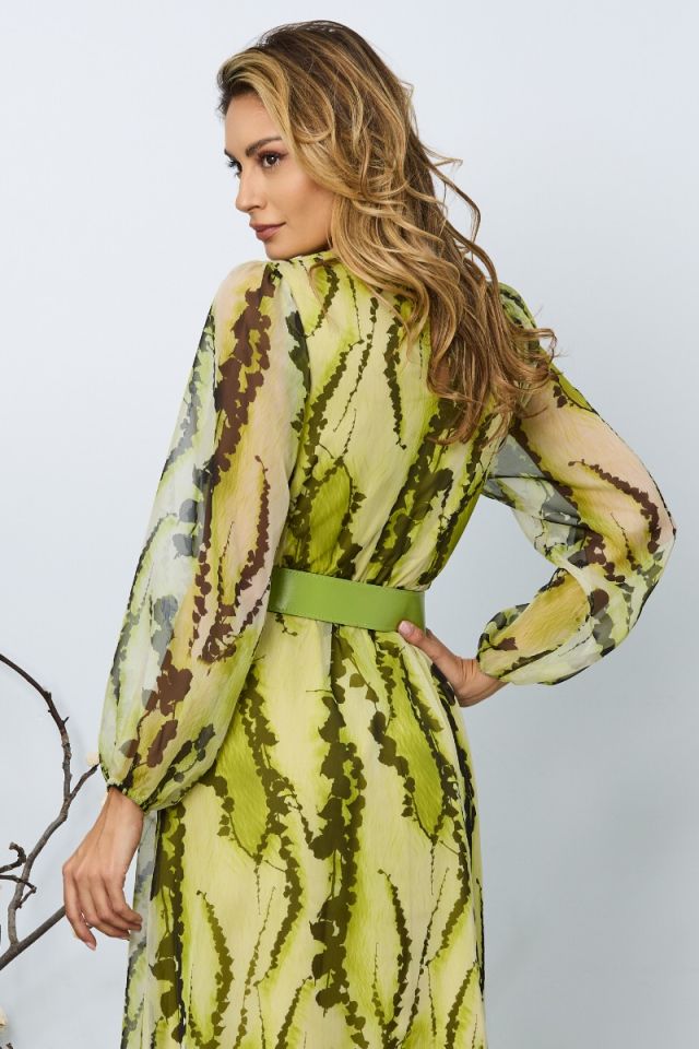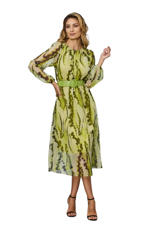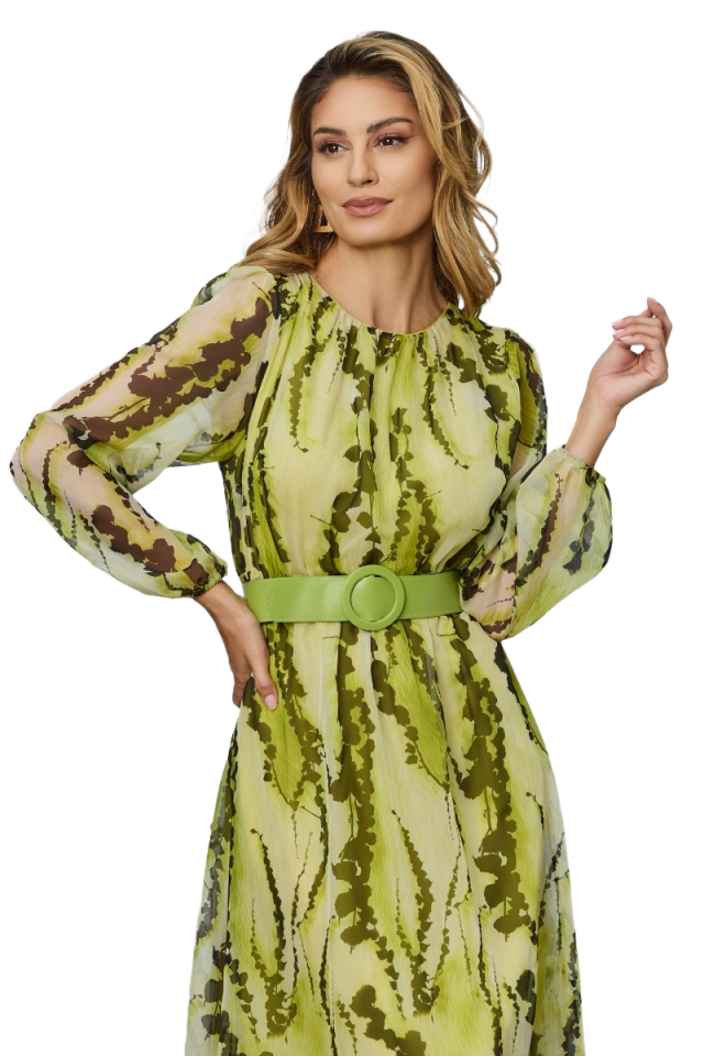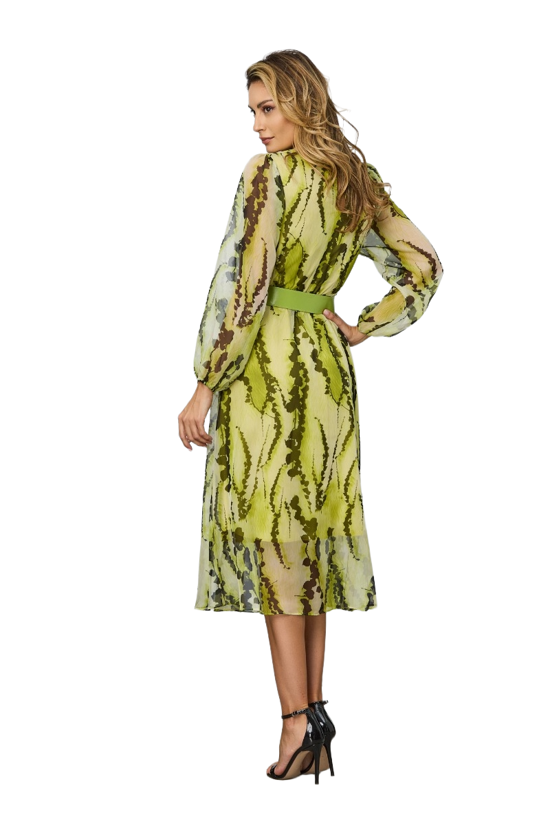 Rochie midi eleganta, din voal lime cu imprimeu negru , perfecta atat pentru un eveniment de zi cat si pentru un eveniment de seara. Este o combinatie de clasic si modern perfecta atat pentru tinute office, tinute formale dar si elegante.