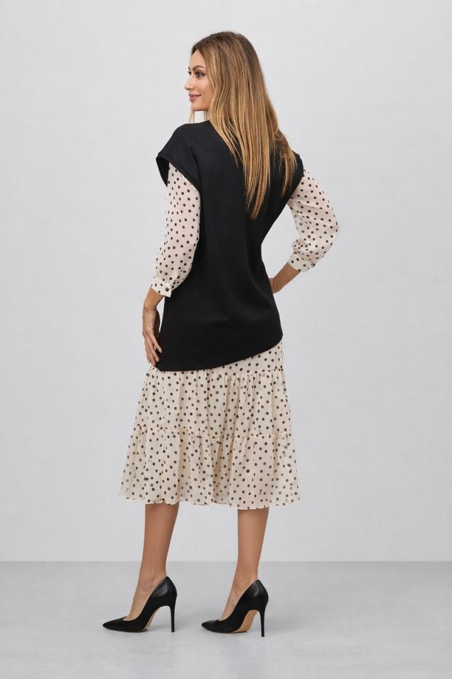 | Material | Rochie: 70% vascoza, 20% poliamida, 10% elastan Vesta: 100% poliamida |