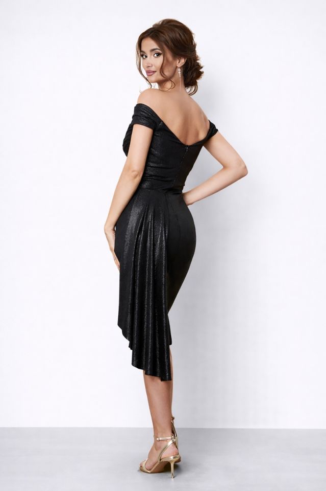 Rochie midi de ocazie, din material elegant cu fir lame, perfecta pentru evenimentele din viata ta.  Design-ul deosebit precum si umerii goi, vor face din aparitia ta una plina de rafinament si eleganta.