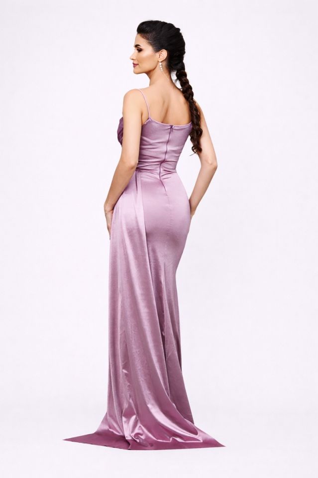 Rochie de ocazie lunga din licra lila, moderna si feminina, special creata pentru evenimentele deosebite din viata ta. Aceasta rochie va scoate in evidenta frumusetea si delicatetea siluetei tale.