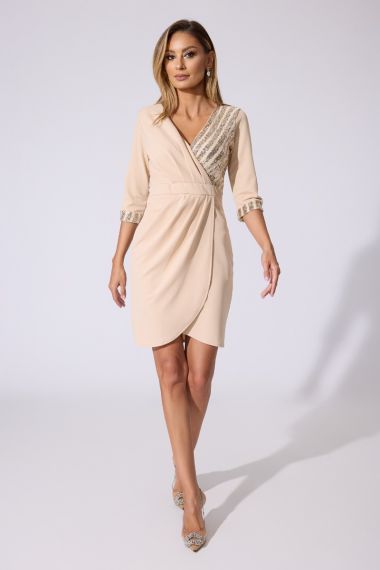 Rochie de ocazie scurta gri din lycra cu paiete argintii, foarte sexy, se potriveste perfect petrecerilor unde vrei sa te evidentiezi. Croiul pe corp si paietele, vor face din aparitia ta, una plina de sex-appeal si rafinament. Pregateste-te sa electrizezi sute de priviri!