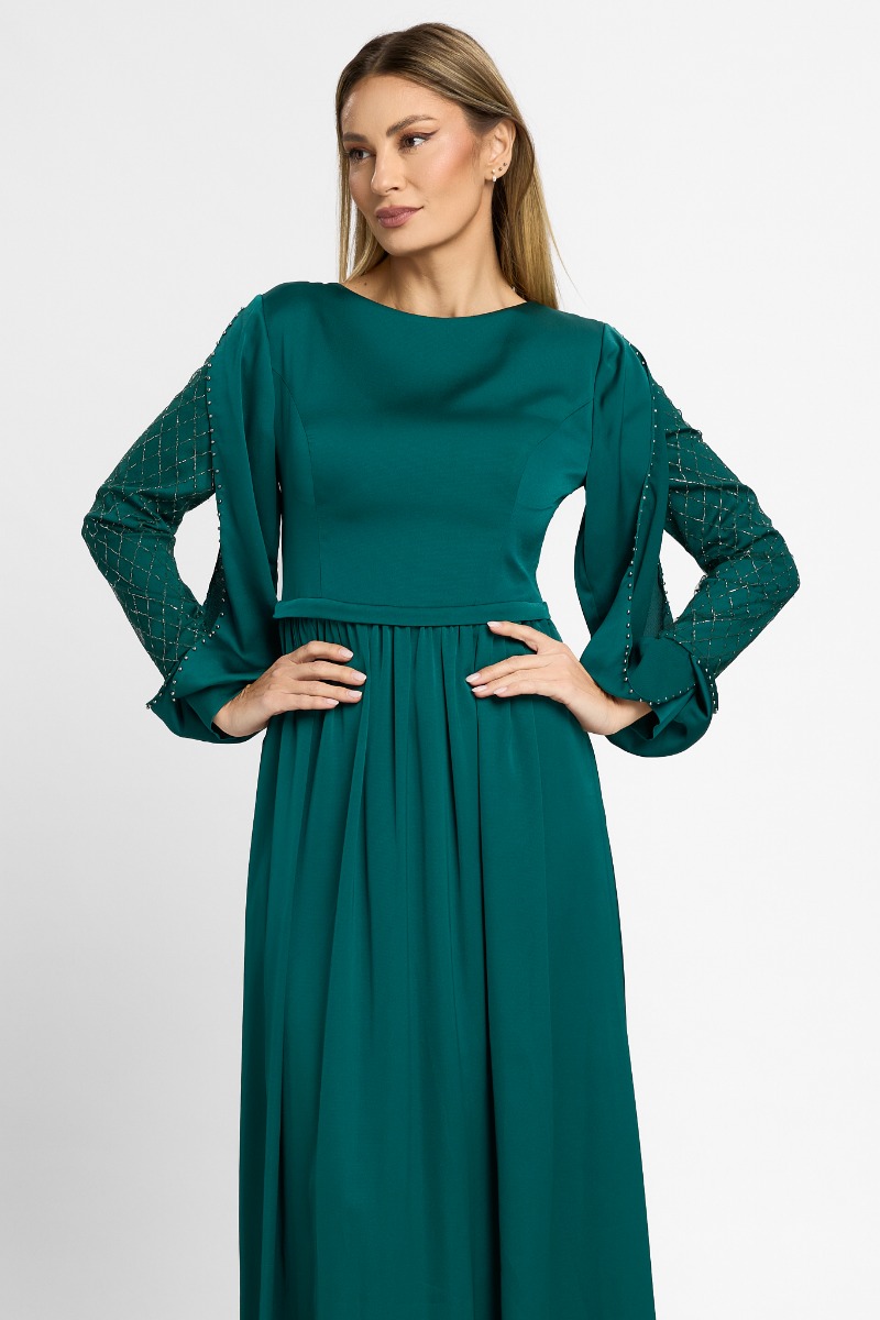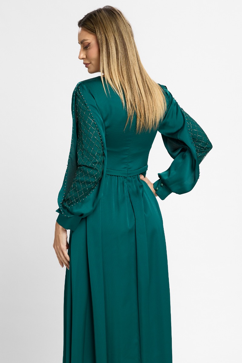 Rochie de ocazie din satin cu croi in clos Yovanna Verde