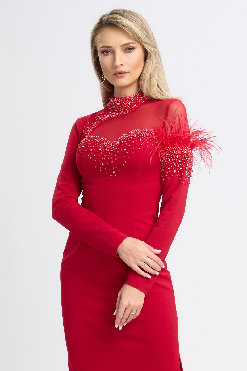 Eleganță spectaculoasă și un strop de îndrăzneală — această rochie midi rosie de ocazie este creată pentru apariții care nu se uită. Croiala sa fină conturează silueta, în timp ce detaliile rafinate o transformă într-o piesă statement.