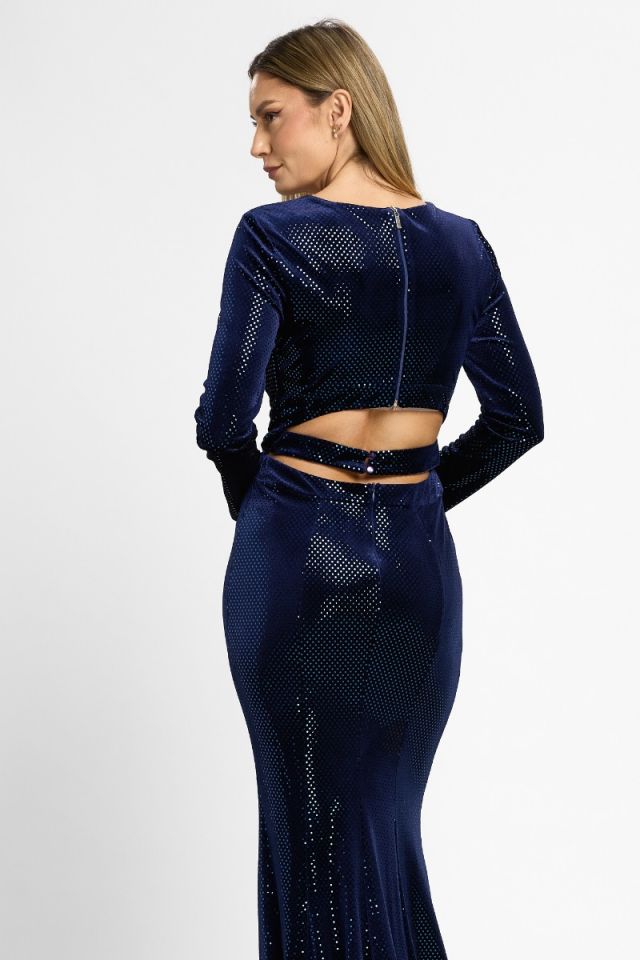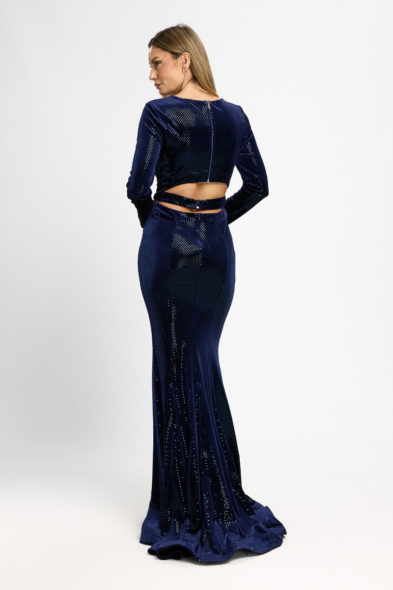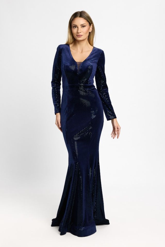 Rochie de ocazie tip sirena din catifea cu paiete Mystique Bleumarin