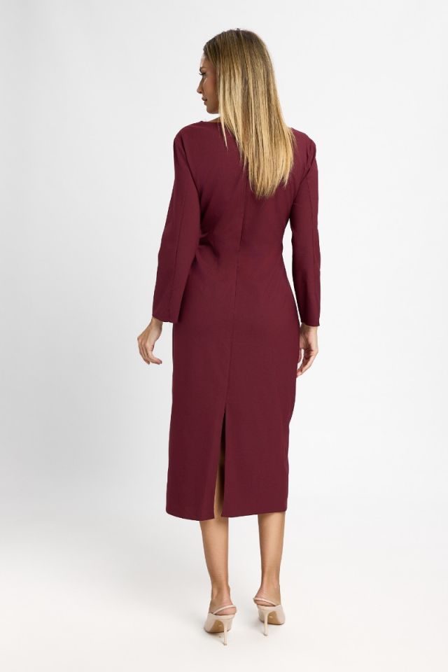 Această rochie midi în nuanță bordo este expresia rafinamentului și a feminității, creată pentru momentele în care vrei să impresionezi prin eleganță și bun gust. Croiala atent realizată urmărește linia corpului, evidențiind silueta într-un mod armonios, iar lungimea midi adaugă un aer clasic și sofisticat.
