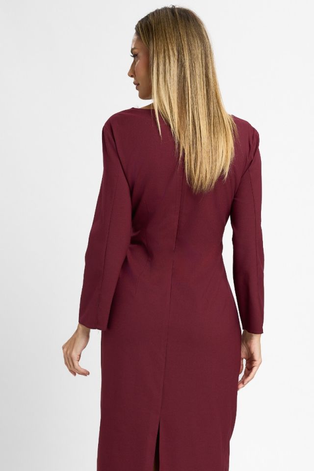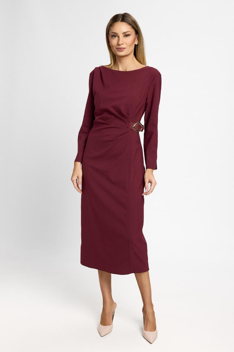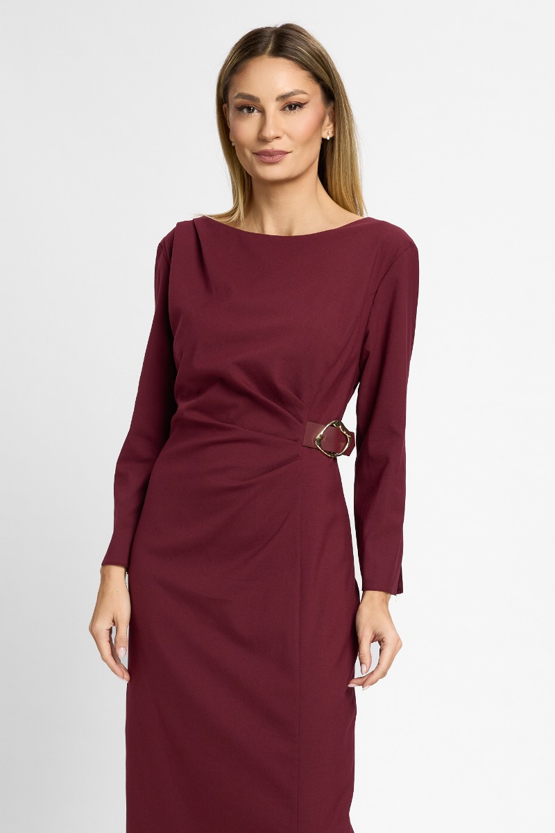 Rochie eleganta cu detaliu auriu in talie Vandana Bordo