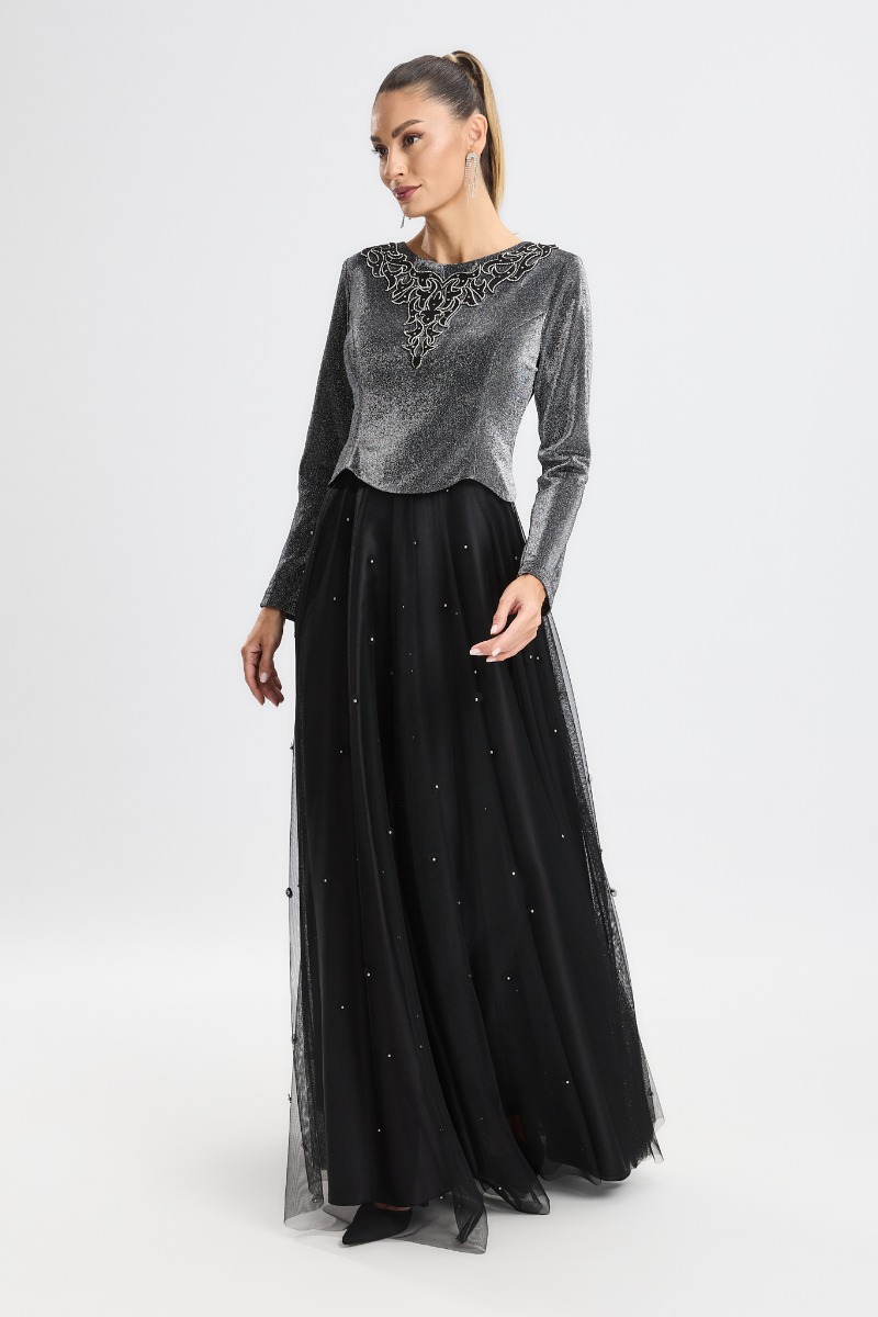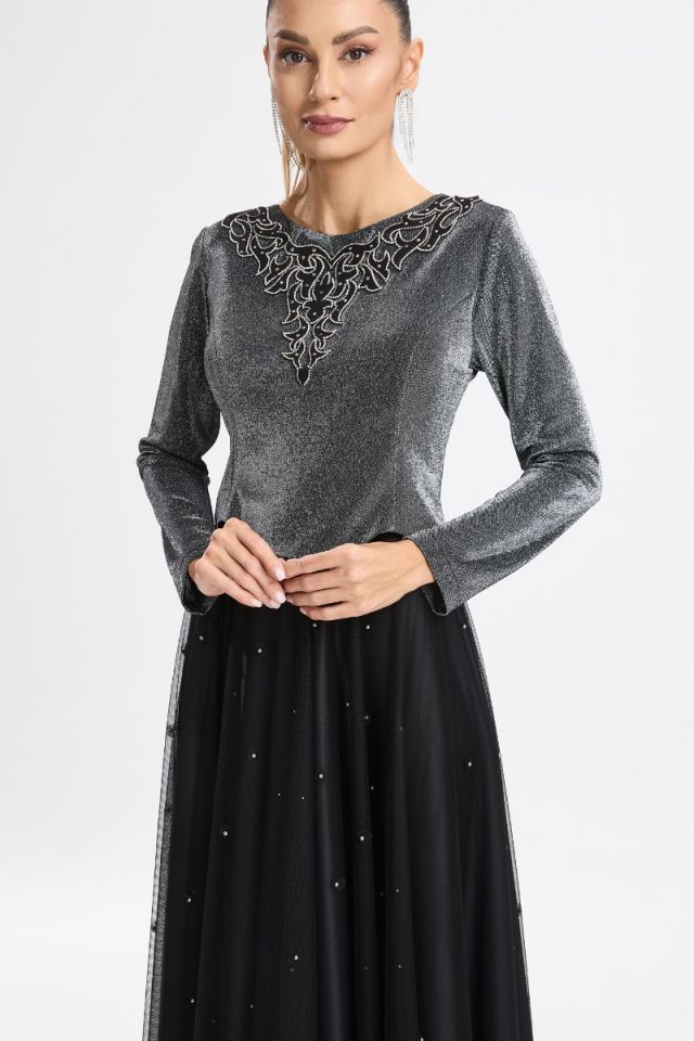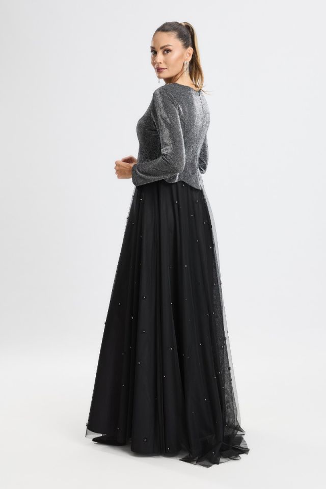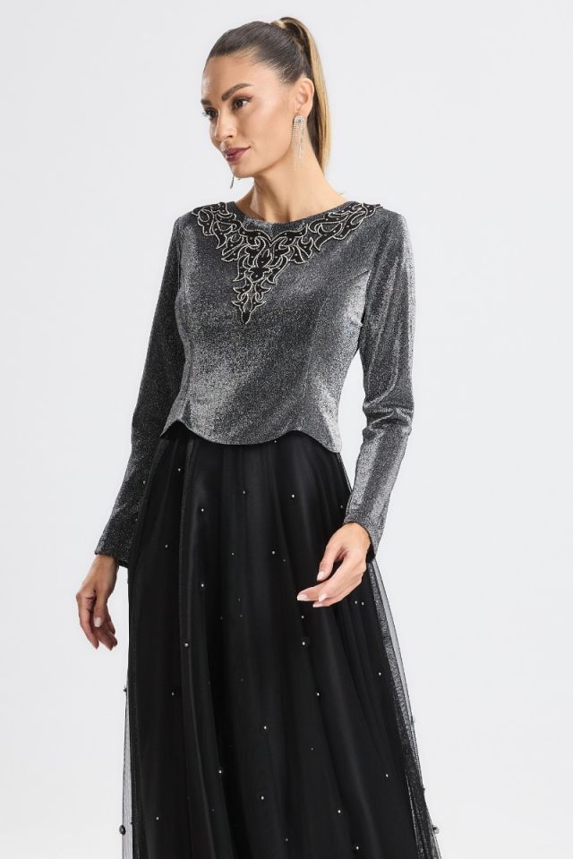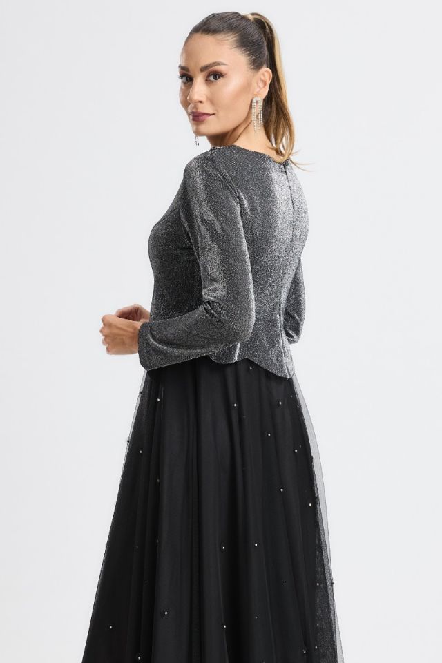 Rochie de ocazie din tull si top din fir lame Rovanna Neagra