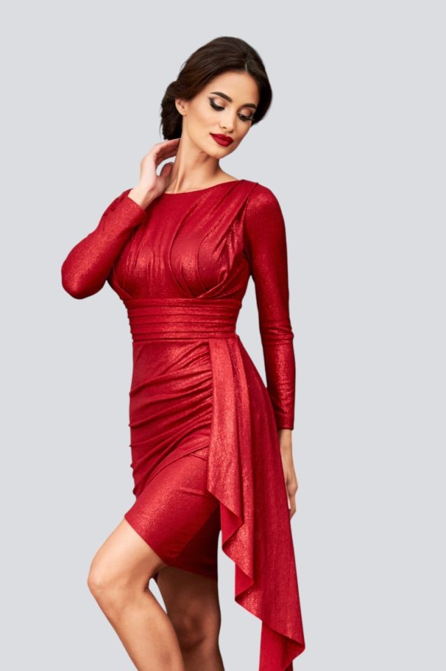 Rochie eleganta scurta rosie, ce iti pune in valoare feminitatea. Purtata cu tocuri, vei obtine un look modern, in tendintele sezonului. Design-ul precum si materialul deosebit, va conferi tinutei tale stil si sigur vei atrage priviri asupra ta.