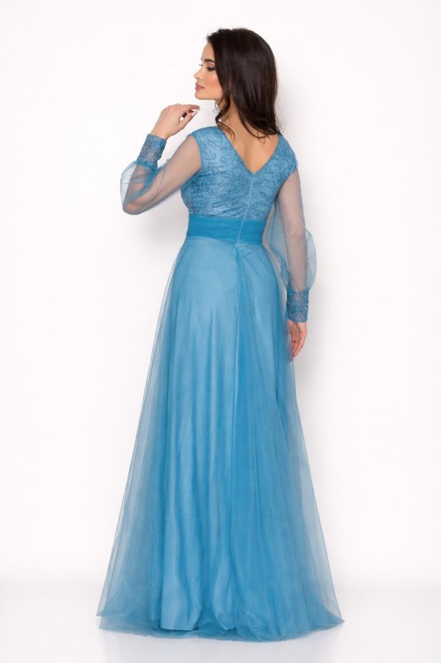 Rochie de ocazie din tull cu dantela Dinasty Bleu