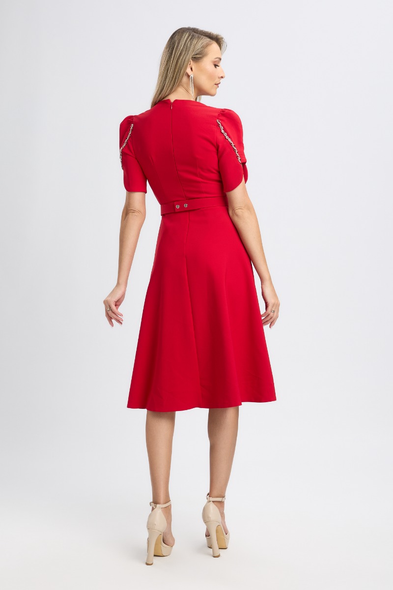 Rochie de ocazie cu decolteu petrecut accesorizata cu strass-uri Simone Rosie