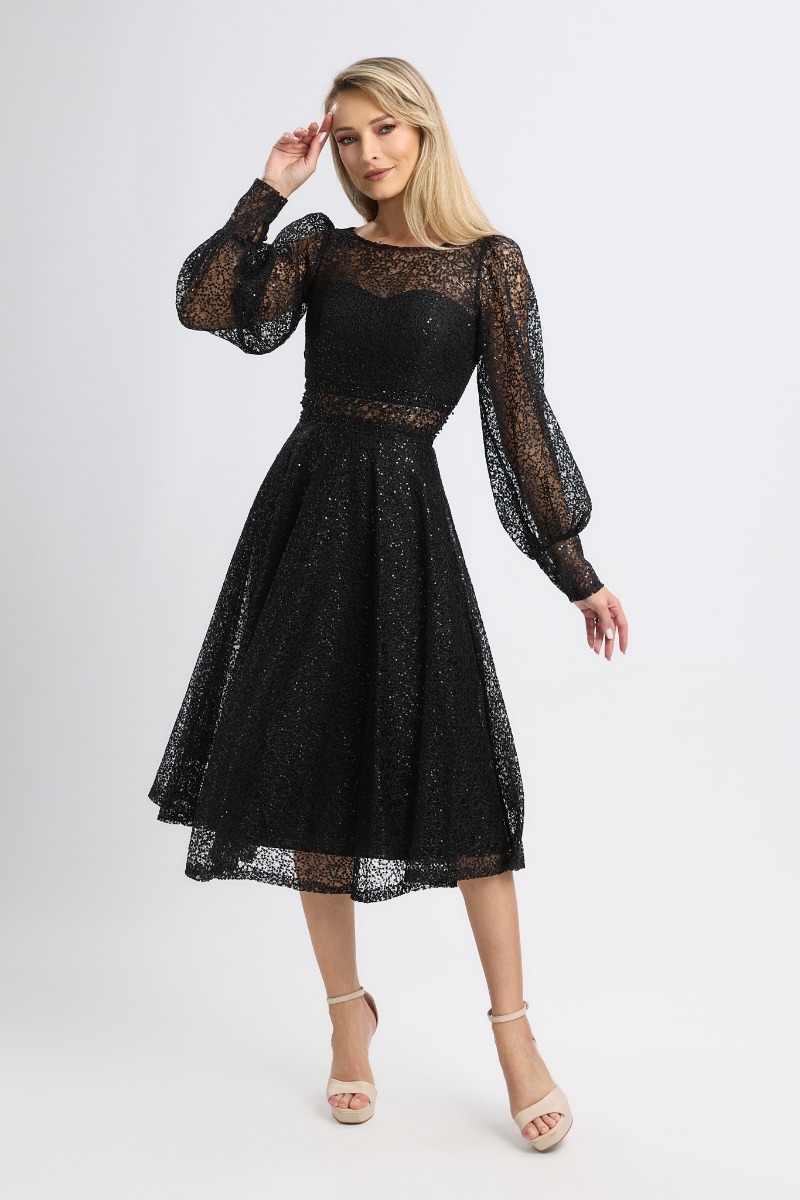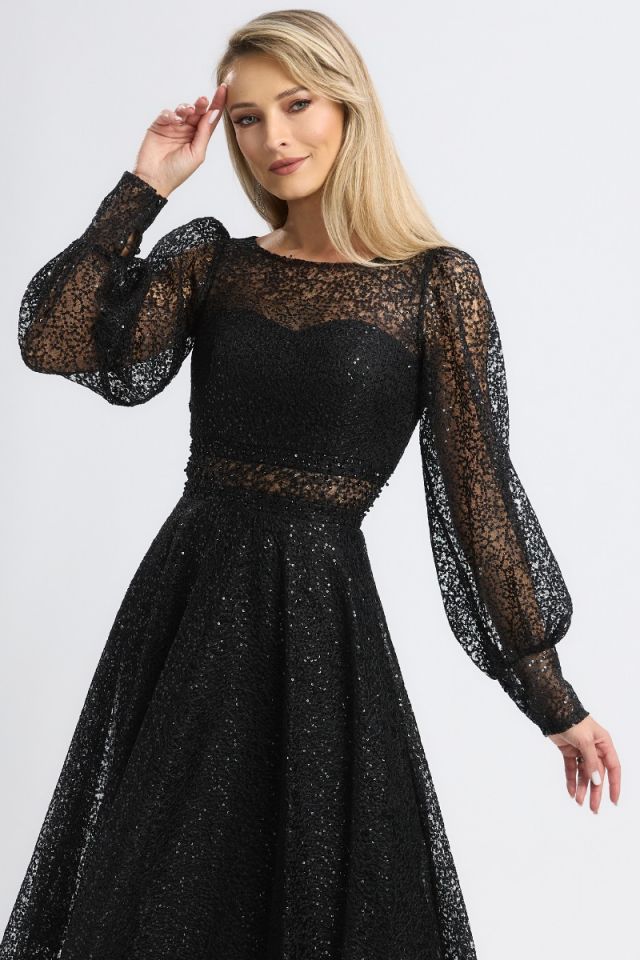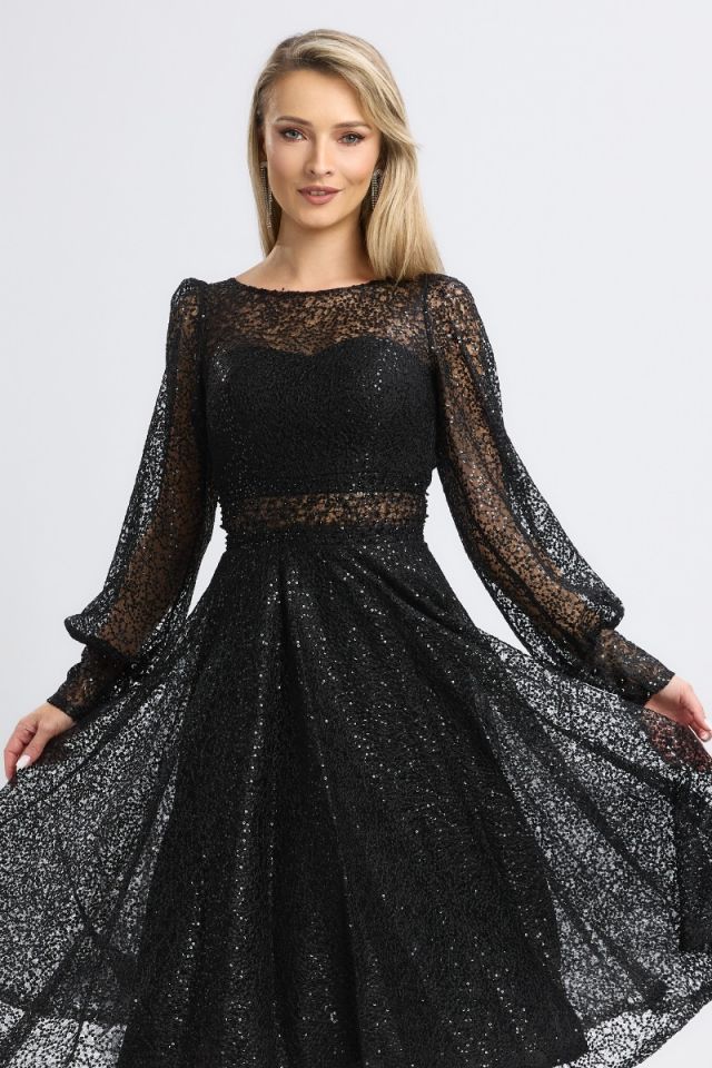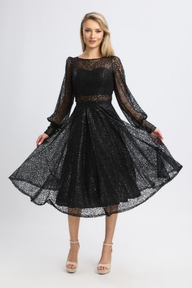 Răvășitoare prin rafinament și feminitate, această rochie midi de ocazie neagra din dantelă cu paiete este alegerea perfectă pentru apariții memorabile. Creată pentru a sublinia grația și eleganța, rochia îmbină textura delicată a dantelei cu strălucirea subtilă a paietelor, oferind un efect spectaculos.