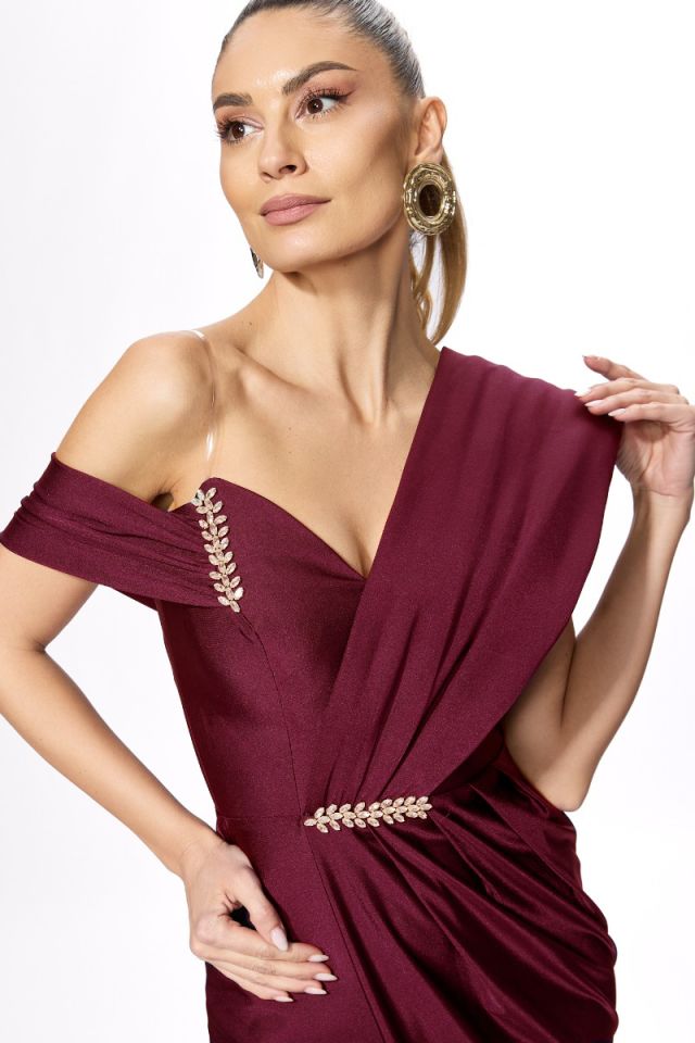 Rochie de ocazie premium din licra cu model petrecut si strass-uri Vivere Bordo