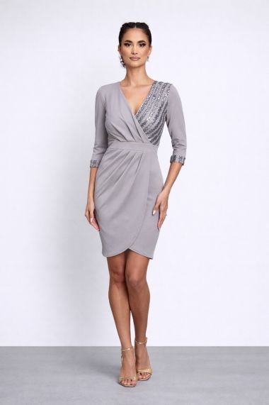 Rochie de ocazie scurta nude din lycra cu paiete, foarte sexy, se potriveste perfect petrecerilor unde vrei sa te evidentiezi. Croiul pe corp si paietele, vor face din aparitia ta, una plina de sex-appeal si rafinament. Pregateste-te sa electrizezi sute de priviri!